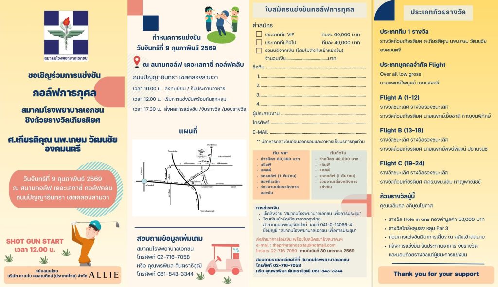 ขอส่งมอบกำลังใจให้โรงพยาบาลสมาชิก 3 แห่งที่อยู่ในอำเภอหาดใหญ่ และได้รับความเสียหายจากมหาอุทกภัยน้ำท่วม รพ. กรุงเทพ หาดใหญ่ รพ.มิตรภาพสามัคคี หาดใหญ่ รพ. ธนบุรี ราษฎร์ยินดี รพ. ละ 50,000 บาท รวม 150,000 บาท ขอให้สถานการณ์กลับสู่ภาวะปกติโดยเร็ว และขอชื่นชมทุกท่านที่ดูแลประชาชนอย่างเข้มแข็ง สมเกียรติแห่งวิชาชีพ